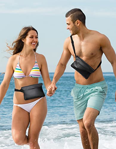 Wmcaps Marsupio impermeabile con custodia impermeabile per cellulare, cinturino regolabile, impermeabile, per spiaggia, nuoto, canottaggio, sport acquatici, accessori per vacanze (nero)