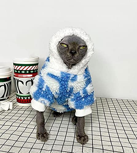 WMXING Vestiti per Gatti, Vestiti per Gatti Sphynx, Doppio Strato più Vestiti per Gatti Caldi in Pile, Felpa con Cappuccio per Gatti, t-Shirt per Gatti con Collo Alto-Giacca con Cappello_L-