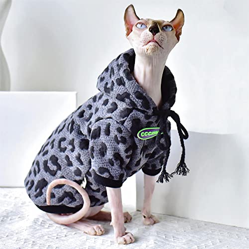 WMXING Vestiti per Gatti, Vestiti per Gatti Sphynx, Felpa con Stampa Leopardata in Cotone-Leopardo Grigio_XL