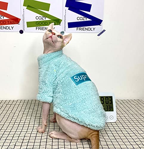 WMXING Vestiti per Gatti, Vestiti per Gatti Sphynx, Vestiti per Gatti in Pile, Vestiti Caldi per Gatti, Vestiti per Gatti Spessi-Blu_M+