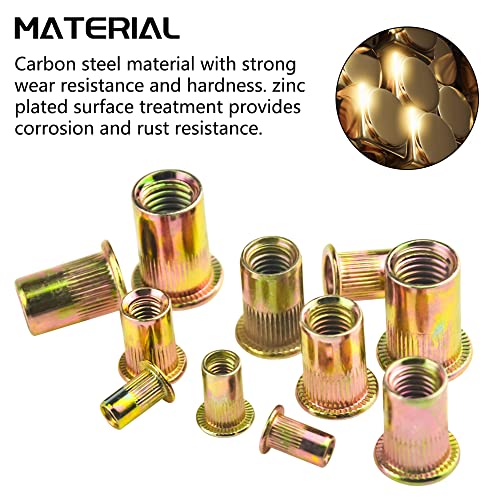 WMYCONGCONG - Kit di inserti per rivetti filettati in acciaio al carbonio con testa piatta zincata, 200 pezzi, tra cui M4 M5 M6 M8 M10