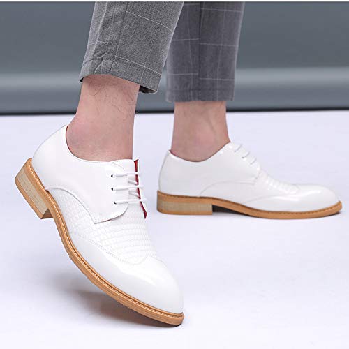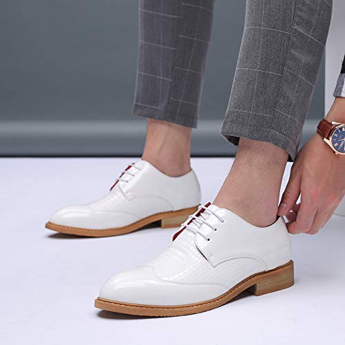WMZQW Scarpe de Matrimonio Uomo Classiche Pelle Derby Stringate Basse Vestito A Punta Affari Eleganti Scarpe da Sera 38-48,Bianca,38