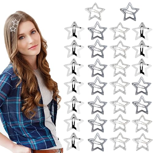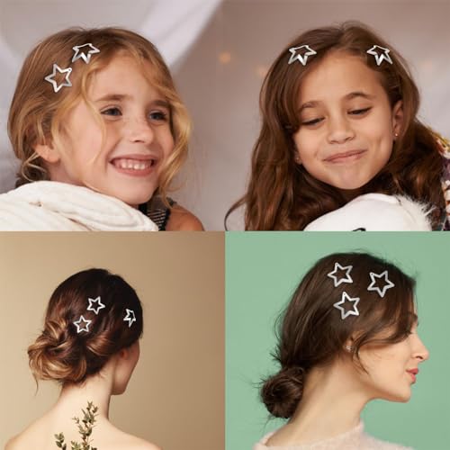 Wnddle 30 Pcs Fermagli per Capelli Stella, Argento Stella Hairclips, Mollette a Stella per Capelli in Metallo Fermagli a Forma di Stella per Acconciature da Donna e Ragazza (Argento)