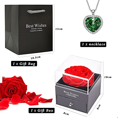 Squisita confezione regalo di fiori conservati Nella confezione regalo dei gioielli è presente 1 rosa rossa eterna. Questa è una vera rosa che non sbiadisce mai, che rappresenta "l'amore eterno". Il corpo della scatola è nero e stampato con "Best Wishes", perfetto per l'amore contro le rose rosse.
