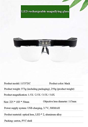 WNJ-TOOL, 1set 1.5X 2.5X 3.5X 5X Supporto Capo Occhiali Magnifier, Ricarica USB Fascia Lente d'Ingrandimento con 2 luci LED dell'auricolare la Lente di ingrandimento (Taglia: MGTD104)