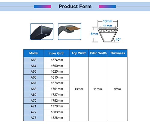 WNJ-TOOL, 1pc Cinghia Un Tipo di Gomma Nera azionamento V Belt A63 / 64/65/66/67/68/69/70/71/72/73 ad Anello Chiuso Trasmissione Industrial Triangle V Belt (Taglia: A63)