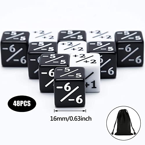 Quantità sufficiente: Con 48 pezzi di contatori di dadi, tra cui 24 pezzi di contatori di dadi bianchi positivi e 24 pezzi di contatori di dadi neri negativi, bella combinazione per soddisfare il vostro gioco sotto l'uso o la sostituzione