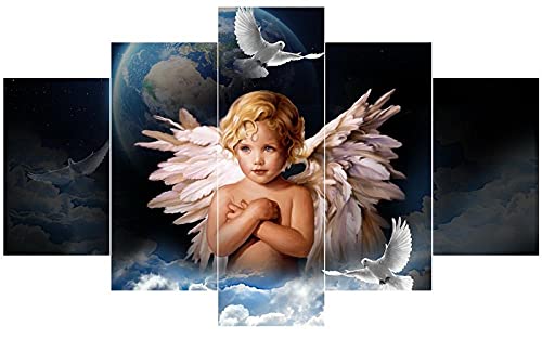 WNSHDJH Quadro su Tela 5 Pezzi Terra e angelo Stampe e Quadri moderni Stampa su tela,Soggiorno Camera da Letto Parete Casa Decor Arte Regalo di festa (Senza Telaio) 150x80 cm