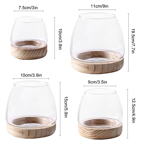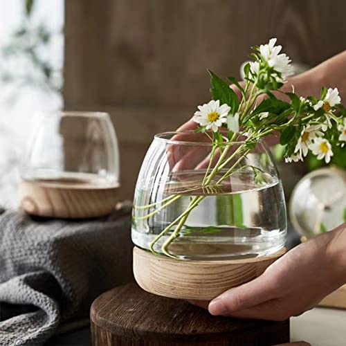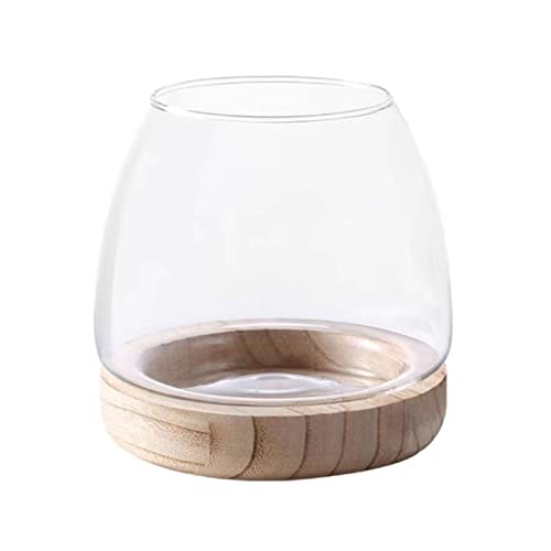 Wnvivi Ciotola di pesce in vetro trasparente con base in legno,Vaso idroponico Fishbow,Ciotola rotonda in vetro per la decorazione del soggiorno, 15 cm