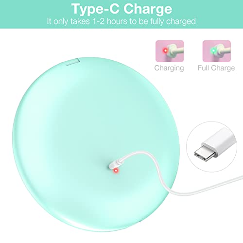 Wobsion LED Specchio Compatto Ricaricabile Specchietto da Borsetta Specchio Viaggio Specchio Tascabile Specchio con ingrandimento 1X/10X Specchietto da Borsa con Luce Regolabile Specchio Regali Ciano