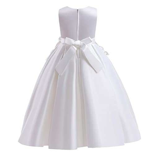 WOCINL Abito lungo da sposa in pizzo ricamato senza maniche da cerimonia nuziale in raso da principessa in rilievo per feste di compleanno, bianco, 10-11 Anni