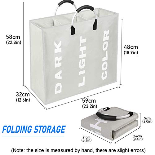 O'woda Cesto per Biancheria con 3 Scomparti, Cesto Portabiancheria di Grandi Dimensioni, Portabiancheria Sporca con Manici (Grigio)