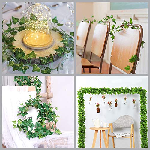 O'woda Set da 12 Edera Artificiale Finta,con 100 Fascette per Cavi, Artificiale Edera Rampicante Ghirlanda per Esterne Interne Festa Matrimonio Casa Finestra Siepe Parete di Giardino Balcone