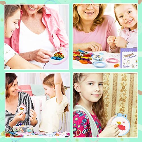O'woda Kit per ricamo per bambini, kit di strumenti punto croce principiante, kit punto croce per bambini, include 10 motivi a punto croce e 4 cerchi, 12 matasse, kit da cucito con istruzioni