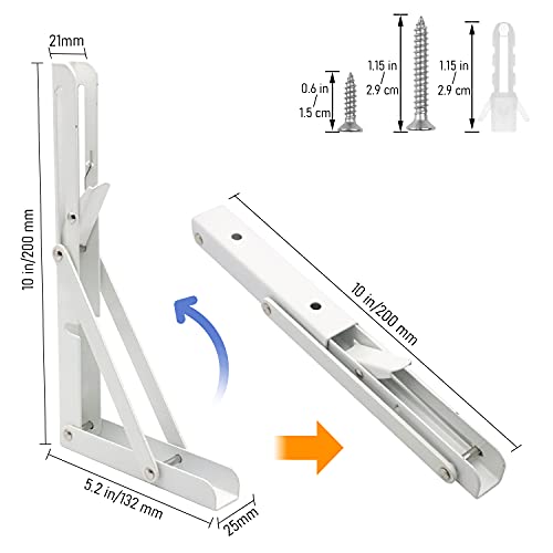 O'woda Staffe Pieghevoli per Tavolo da Muro, 250mm / 10in Staffe per Mensole Pesanti, Salvaspazio Reggimensola Pieghevole da Parete, Carico Massimo: 50 kg, Bianco