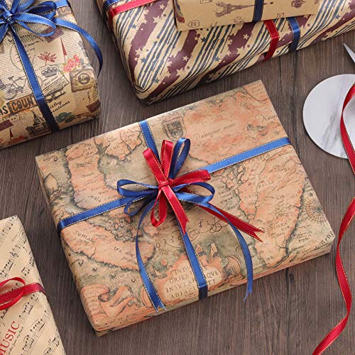 Wodasi Fogli di Carta da Regalo, 6 Fogli Carta Regalo e 2 Rotoli di Nastro, Foglio Di Carta Da Regalo Kraft, Fogli Carta da Regalo, Carta da Regalo Vintage, Fogli Piegati Carta da Regalo