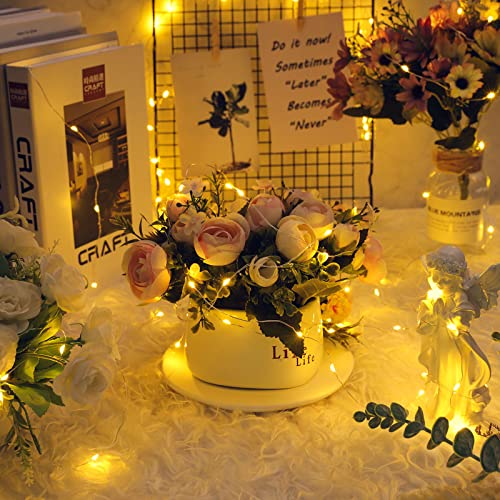 Facile da Forma: La catena leggera a LED è realizzata in filo di rame flessibile super morbido, che ha una buona duttilità, può essere facilmente piegata in diverse forme desiderate, decorare corone, fiori, alberi, piante, mobili, vasi, ecc.