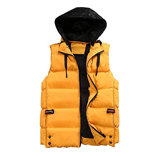 Wodechenshan Gilet di Piume da Uomo,Gilet Caldi con Cappuccio Piumino Gilet Senza Maniche Gilet, Uomo Giacca Leggera Gilet Imbottito in Cotone Giallo Cappotti Casual Abbigliamento, M