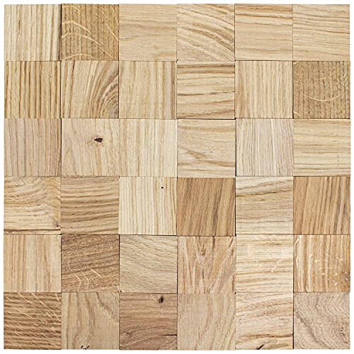 Wodewa Rivestimento Murale Legno di Quercia strutturato 30 x 30cm Mosaico Pannelli Auto Adesivo Murali Rivestimento Parete Legno Decorazioni Pareti 3D Pannello Decorativo Cucina Cameretta