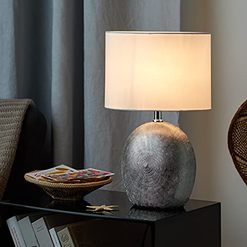 WOFI Lampada da Tavolo E14, 40 W, Argento, 24 x 17 x 37 cm, con interruttore, ceramica;