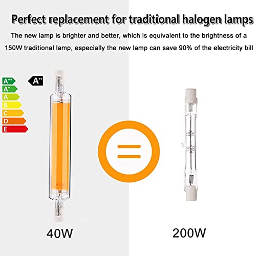 WOGQX Dimmbar R7S LED Lampadina, 15W/20W/30W/40W Linear Flutlicht 360° Abstrahlwinkel, 118Mm/78Mm R7s Halogen Ersatzlampe, COB LED- Glühbirne, 2Pcs,Warm white,40W 118MM