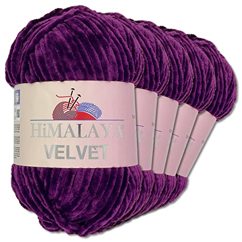 Wohnkult “Himalaya Velvet” - Gomitolo di lana soffice, 5 gomitoli da 100 g, per accessori, indumenti e coperte, 40 colori a scelta (90028 - viola)