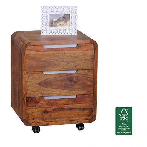 Wohnling Sheesham Legno massello mobile pedestals scrivania con 3 cassetti e ruote sul fondo