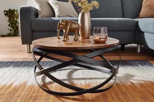 NESTHÄKCHEN TIMES DIVERENT ? Elegante tavolo da salotto in stile industriale alla moda. L'insolita cornice in metallo, che si intreccia come un nido, assicura sguardi curiosi. Snack, telecomandi, riviste e simili trovano posto sul piano rotondo del tavolo in legno massello. Rilassati e goditi il tuo programma TV mentre il tavolino ha tutto ciò di cui hai bisogno a portata di mano!