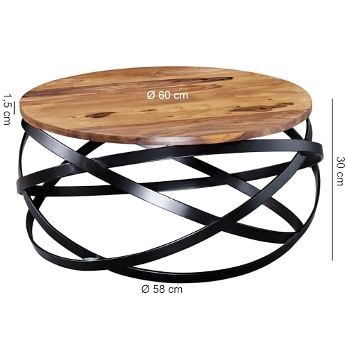 WOHNLING tavolino MANUR 60x30x60 cm Tavolino in legno massello di sheesham/metallo | Tavolo da salotto design rotondo | Tavolo da salotto industriale