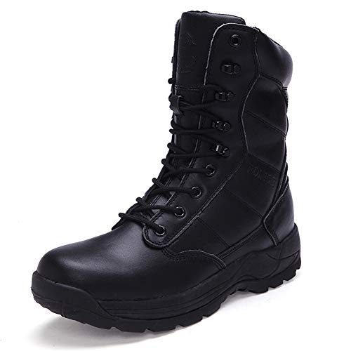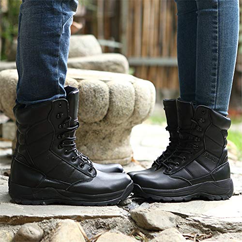 WOJIAO Unisex Uomo Donna Alta Aiuto Polizia Militare Stivali da Combattimento in Pelle Nera Deserto Combattere Tooling Sneaker Inverno Caviglia Scarpe degli Amanti