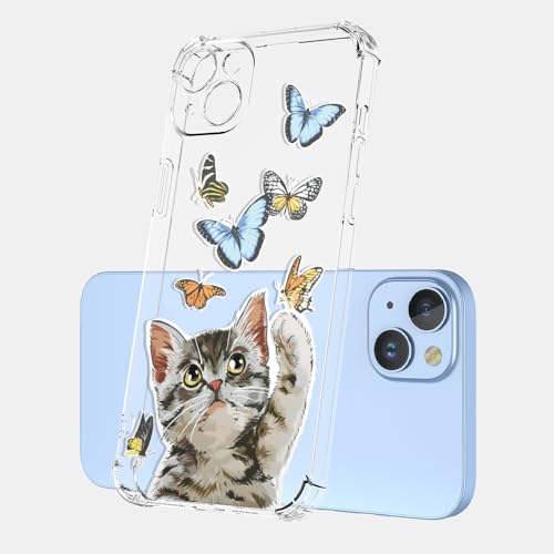 WOKEZ Custodia Compatibile con Motorola Moto G14 4G, Trasparente Silicone Custodia per Moto G14 4G con Motivo Gatto Design, Clear Case Cover Protettiva per Cellulare Antiurto-B40