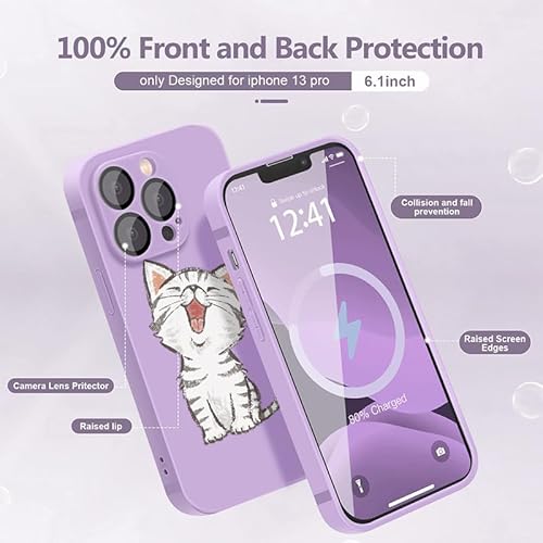 WOKEZ Custodia per Motorola Edge 40 Neo, Silicone Liquido Protezione Case per Moto Edge 40 Neo con Gattino, TPU Morbida Full Body Cover Protettiva con Antigraffio-Viola07