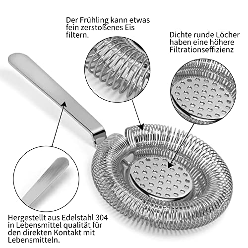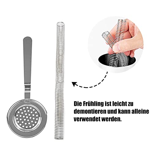 【Molla filtro fine per colino da cocktail】: il colino da cocktail è dotato di una molla elicoidale, la bobina è facile da estrarre, la molla può essere rimossa per la pulizia, che è comoda e pulita.