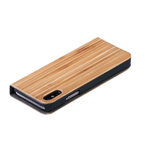 WOLA per iPhone X/XS Case Flip Legno Forrest Cover plegable bambù