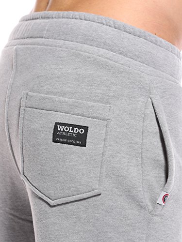 woldo Athletic - Pantaloni da jogging con piccolo logo sul lato sinistro, coulisse elastica con logo toppa il laccetto