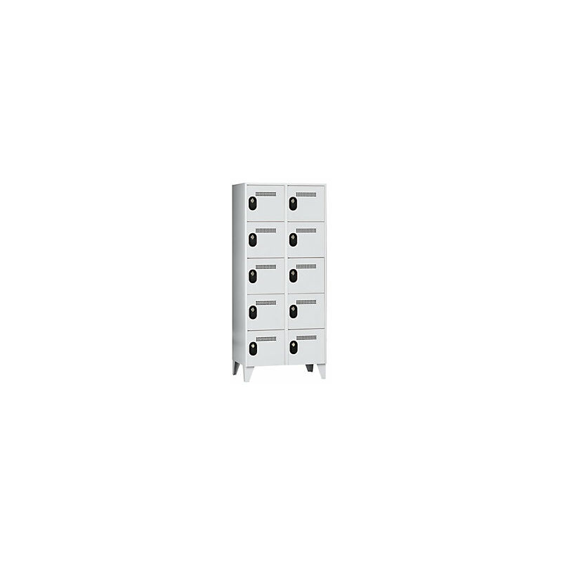 Armadietto a scomparti, altezza scomparto 320 mm, alt. x largh. x prof. 1850 x 800 x 500 mm, larghezza scomparto 400 mm, colore corpo / ante: grigio chiaro / grigio chiaro. Fornitura = montato. Altezza = 1850 mm. Profondità = 500 mm. Larghezza = 800 mm. Colore corpo = grigio chiaro RAL 7035. Colore porta = grigio chiaro RAL 7035. Serratura = chiavistello girevole di sicurezza per lucchetto. Numero scomparti in larghezza = 2 pz. Numero scomparti = 10 pz. Larghezza scomparti = 400 mm. Materiale = lamiera d'acciaio, saldata a punti. Altezza armadietto = 1850 mm. Dotazione interna = senza dotazione interna. Larghezza interna = 398 mm. Altezza interna = 320 mm. Profondità interna = 475 mm. Tipo di porta = anta a battente. Altezza scomparti = 320 mm. Larghezza ripiani = 400 mm. Profondità ripiani = 500 mm. Altezza piedini = 150 mm. Struttura = saldata a punti. Superficie = con verniciatura a forno. Robusta struttura in lamiera d'acciaio saldata a punti, completa di bordi con doppia