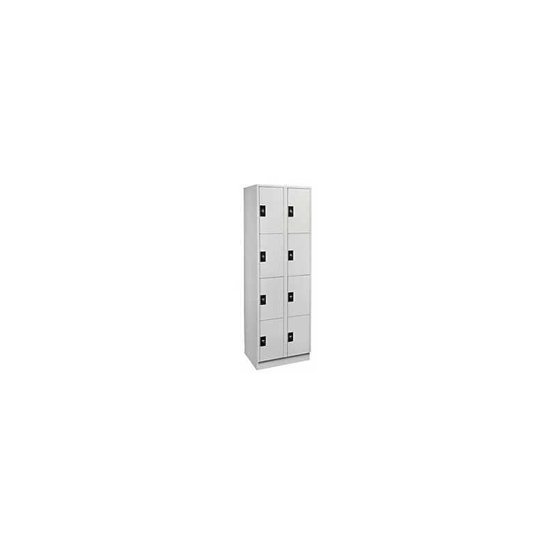 Armadietto a scomparti, 2 vani, 4 scomparti per vano, grigio chiaro / grigio chiaro. Fornitura = montato. Altezza = 1800 mm. Profondità = 500 mm. Larghezza = 600 mm. Colore corpo = grigio chiaro RAL 7035. Colore porta = grigio chiaro RAL 7035. Serratura = serratura a cilindro di sicurezza differenziata. Numero scomparti in larghezza = 2 pz. Numero scomparti = 8 pz. Larghezza scomparti = 300 mm. Materiale = lamiera d'acciaio. Altezza armadietto = 1800 mm. Dotazione interna = senza dotazione interna. Larghezza interna = 298 mm. Altezza interna = 420 mm. Profondità interna = 475 mm. Tipo di porta = anta a battente. Numero chiavi = 2 pz. Altezza scomparti = 420 mm. Larghezza ripiani = 300 mm. Profondità ripiani = 500 mm. Altezza zoccolo = 100 mm. Struttura = saldata a punti. Superficie = con verniciatura a forno. Facili da pulire grazie agli scomparti interni senza bordi. Aerazione mediante fori sulla parete posteriore. Fermi in gomma per una battuta ante silenziosa. Resistente struttura