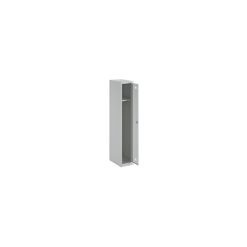 Armadietto in acciaio, con verniciatura a fuoco, 1 scomparto, altezza 1700 mm, larghezza 300 mm, 1 cappelliera, 1 asta appendiabiti, elemento di base, grigio chiaro / grigio chiaro. Fornitura = smontato. Versione = elemento di base. Altezza = 1800 mm. Profondità = 500 mm. Larghezza = 300 mm. Colore corpo = grigio chiaro RAL 7035. Colore porta = grigio chiaro RAL 7035. Serratura = chiavistello girevole di sicurezza per lucchetto. Numero scomparti in larghezza = 1 pz. Larghezza scomparti = 300 mm. Materiale = acciaio. Altezza armadietto = 1700 mm. Dotazione interna = 1 cappelliera, 1 asta appendiabiti con 3 ganci scorrevoli. Larghezza interna = 298 mm. Altezza interna = 1700 mm. Profondità interna = 475 mm. Tipo di porta = anta a battente. Numero chiavi = 2 pz. Altezza zoccolo = 60 mm. Struttura = sistema a innesto. Superficie = con verniciatura a forno. Robusto armadietto in lamiera d'acciaio verniciata a fuoco. Elementi di base e aggiuntivi in varie larghezze e colori. Dotazione