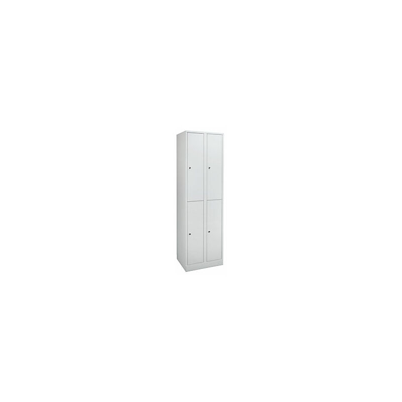 Armadio guardaroba in dimensioni confortevoli, 4 scomparti, larghezza scomparto 400 mm, grigio chiaro / grigio chiaro. Fornitura = montato. Altezza = 1950 mm. Profondità = 500 mm. Larghezza = 800 mm. Colore corpo = grigio chiaro RAL 7035. Colore porta = grigio chiaro RAL 7035. Serratura = serratura a cilindro di sicurezza differenziata. Numero scomparti in larghezza = 2 pz. Numero scomparti = 4 pz. Larghezza scomparti = 400 mm. Materiale = lamiera d'acciaio, saldata a punti. Altezza armadietto = 1950 mm. Dotazione interna = 1 asta appendiabiti, 4 ganci scorrevoli. Larghezza interna = 398 mm. Altezza interna = 912 mm. Profondità interna = 475 mm. Tipo di porta = anta a battente. Numero chiavi = 2 pz. Altezza zoccolo = 100 mm. Struttura = saldata a punti. Superficie = con verniciatura a forno. Armadi in comode dimensioni. Aerazione mediante fori sulla parete posteriore. Zoccolino chiuso su tutti i lati alto 100 mm. Robusta struttura in lamiera d'acciaio, verniciata a fuoco, con saldatura