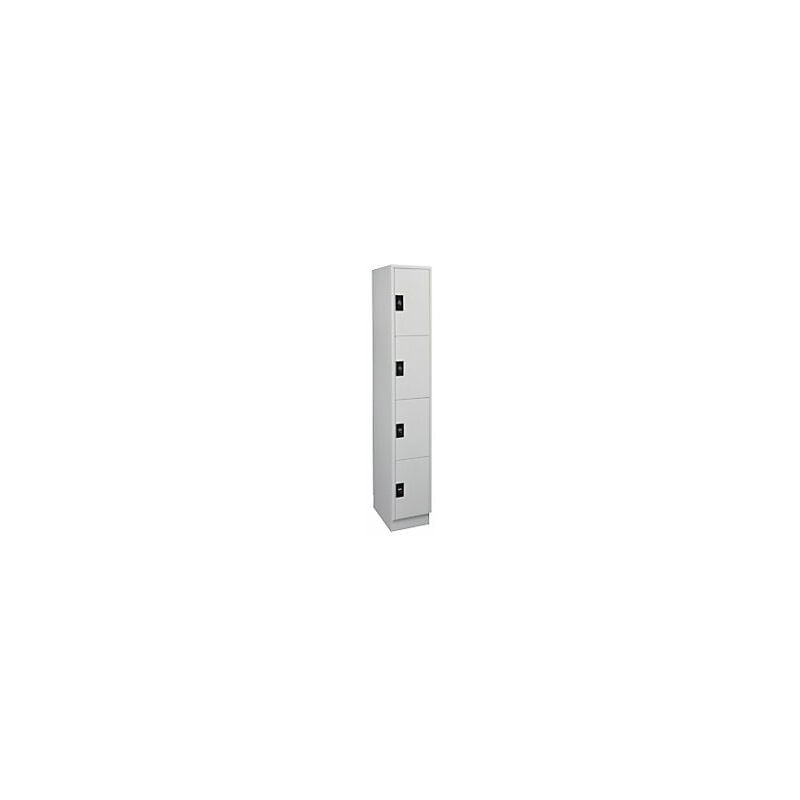 Armadietto a scomparti, 1 vano, 4 scomparti per vano, grigio chiaro / grigio chiaro. Fornitura = montato. Altezza = 1800 mm. Profondità = 500 mm. Larghezza = 300 mm. Colore corpo = grigio chiaro RAL 7035. Colore porta = grigio chiaro RAL 7035. Serratura = serratura a cilindro di sicurezza differenziata. Numero scomparti in larghezza = 1 pz. Numero scomparti = 4 pz. Larghezza scomparti = 300 mm. Materiale = lamiera d'acciaio. Altezza armadietto = 1800 mm. Dotazione interna = senza dotazione interna. Larghezza interna = 298 mm. Altezza interna = 420 mm. Profondità interna = 475 mm. Tipo di porta = anta a battente. Numero chiavi = 2 pz. Altezza scomparti = 420 mm. Larghezza ripiani = 300 mm. Profondità ripiani = 500 mm. Altezza zoccolo = 100 mm. Struttura = saldata a punti. Superficie = con verniciatura a forno. Facili da pulire grazie agli scomparti interni senza bordi. Aerazione mediante fori sulla parete posteriore. Fermi in gomma per una battuta ante silenziosa. Resistente struttura