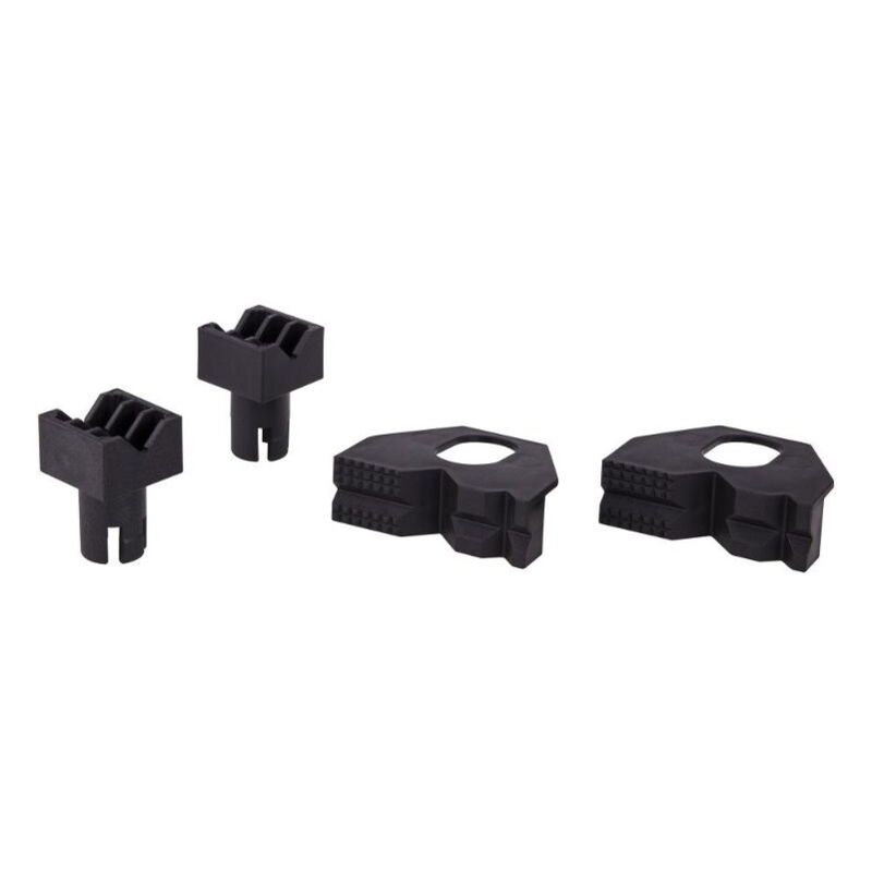 Wolfcraft 4 Set di ganasce per il serraggio di oggetti piatti e arrotondati, 4 pz. Per svariate possibilità di serraggio su tutti i tavoli con fori da 20 mm 2 ganasce per il serraggio in piano 2 ganasce di serraggio con scanalatura a V per il fissaggio sicuro di pezzi circolari compatibile con tutti i fori da 20 mm, ad es. nei tavoli della serie wolfcraft MASTER per maggiori possibilità di serraggio Descrizione del prodotto Questo set comprende 2 ganasce per il serraggio in piano e 2 ganasce con scanalatura a V per il fissaggio sicuro di pezzi circolari, come tubi. L'albero delle ganasce è compatibile con tutti i tavoli con fori da 20 mm, come i tavoli della serie wolfcraft MASTER. Il completamento ottimale che consente di aumentare notevolmente le possibilità di serraggio. Il robusto design in plastica Made in Europe rende le ganasce un accessorio duraturo, utile nei lavori quotidiani. Caratteristiche 2 ganasce per il serraggio in piano 2 ganasce di serraggio con scanalatura a V per