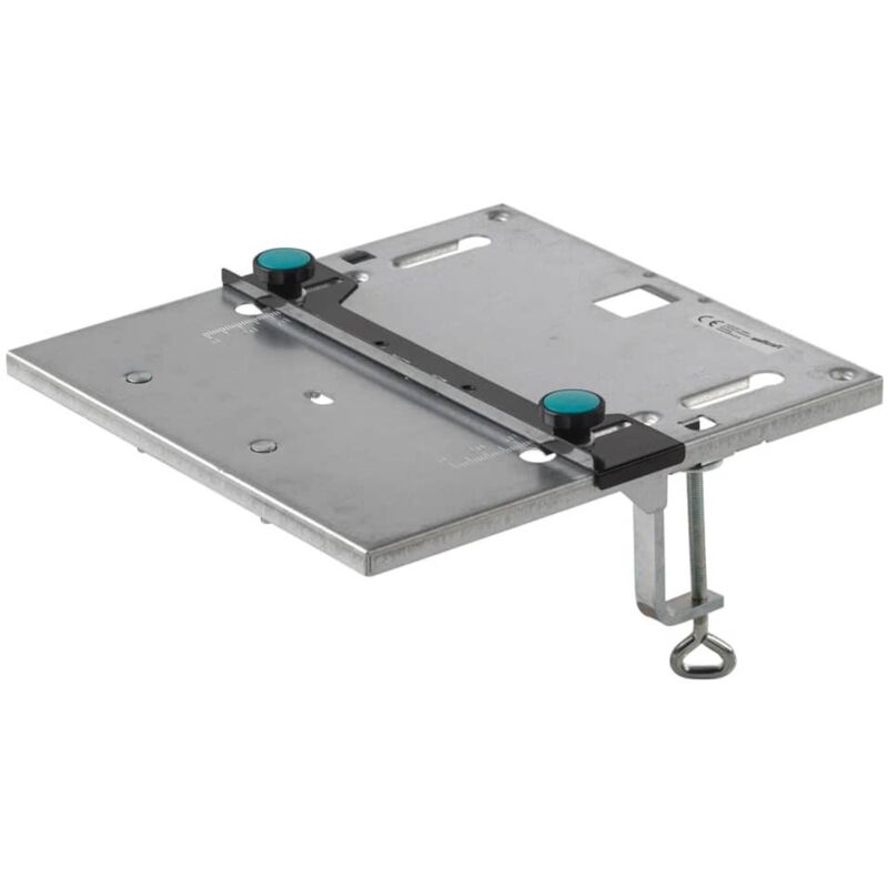 Descrizione del prodotto Il tavolo per seghetto alternativo si fissa in pochi passaggi in modo stabile al bordo del tavolo di lavoro. I morsetti in acciaio sono compatibili con pannelli di spessore max di 60 mm. Con pochi passaggi è possibile fissare il seghetto alternativo dal basso. La chiara visione della linea di taglio e la battuta parallela inclusa permettono di segare in maniera controllata e precisa. L'inserimento della lama dal lato inferiore consente di ottenere più tagli netti e meno bordi frastagliati sulla parte visibile del pezzo da lavorare. Con una superficie di 320 x 300 mm, la piastra per seghetto alternativo è idonea per qualsiasi normale lavoro con seghetto alternativo e al termine può essere riposta in spazi ridotti. Caratteristiche 2 morsetti in acciaio per il fissaggio semplice al tavolo di lavoro taglio controllato e preciso grazie alla chiara visione della linea di taglio e della battuta parallela l'inserimento della lama dal lato inferiore consente di