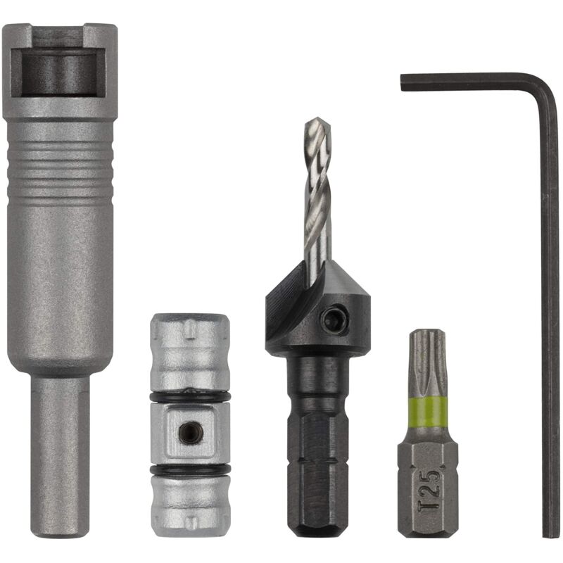 Descrizione del prodotto Con questo starter kit si ha a portata di mano tutto ciò che serve per utilizzare il pratico sistema di flipbit. Il flipbit comprende 2 pezzi: un porta attrezzi doppio a cambio rapido utilizzabile sui due lati e il blocco triangolare che possono essere fissati nel mandrino dell'avvitatore a batteria o del trapano. Per i lavori in serie in 2 fasi è possibile utilizzare il porta attrezzi doppio a cambio rapido sui due lati con gli utensili necessari. Inserirlo nel supporto con il lato desiderato rivolto verso l'alto. Cambio rapido mediante rotazione del supporto. Per consentirvi di iniziare subito a lavorare, in questo kit sono già presenti 2 utensili per l'utilizzo del porta attrezzi doppio a cambio rapido: una punta da trapano con punta svasatrice per legno e un inserto Torx 25®: la combinazione ideale per lavori di foratura e avvitamento in progetti di legno, ad esempio per la posa di tavole da terrazzo. È inclusa anche una chiave esagonale (CH 2) per il