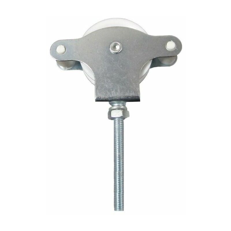 Carrucola stendibiancheria Wolfpack zincata. - Misura: 60 mm. - Rullo in plastica con vite - Facile installazione - Articolo noto come carrello, puleggia stendibiancheria, puleggia tenera, puleggia fune.