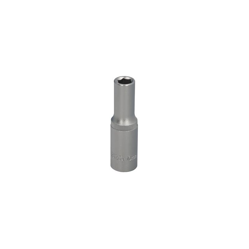Chiave a bussola esagonale lunga 1/2 - Misura: 10 mm. - Profilo interno a 6 facce. - Realizzata in acciaio al cromo vanadio, che gli conferisce maggiore durezza e resistenza. />- Conforme alla normativa DIN 3124. - Bordi arrotondati. - Con zigrinatura per una presa ottimale sul cricchetto. - Supporta coppie di serraggio elevate con un'usura minima.