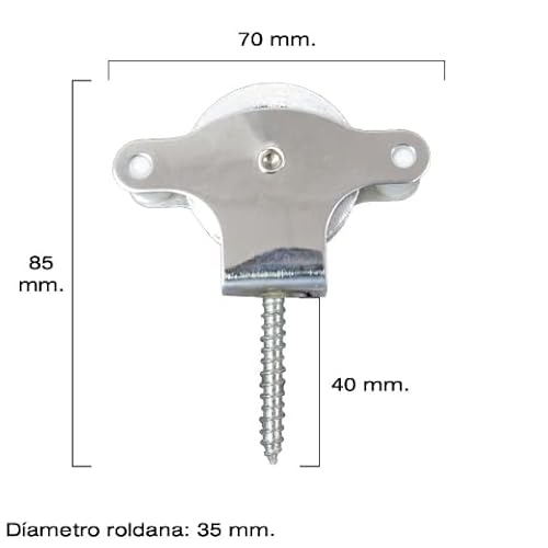 WOLFPACK LINEA PROFESIONAL 5121605 Polea Tendedero Wolfpack Inoxidable 40 mm. / Roldana Metalica con Tirafondo, Gris, 9x7x2 cm