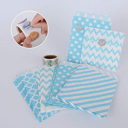 WOLFTEETH Sacchetti Regalo Carta Kraft, 17,5 x 12,5cm per Regali Alimenti Dolci Gioielli Matrimonio Nozze Natale Compleanno Battesimo, Blu