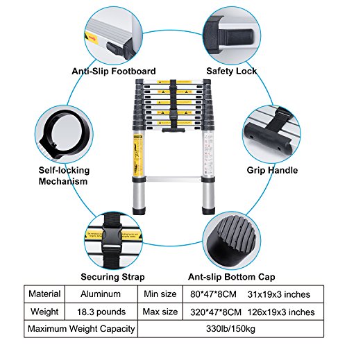 FACILITÀ DI PORTABILITÀ - Con i suoi 3,2 m di lunghezza (10,5 piedi), questa scala telescopica si ritrae a un quarto della sua altezza per riporla facilmente in auto o in altri spazi limitati.