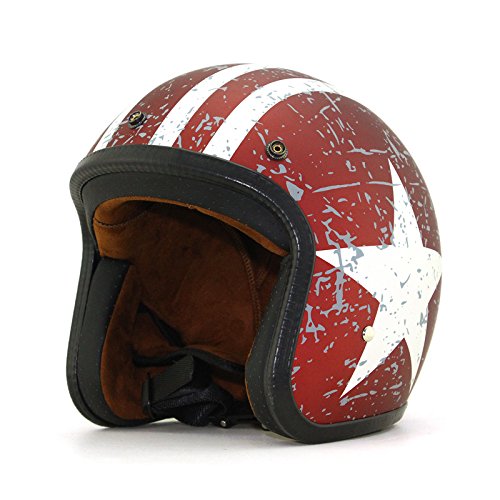 Woljay Casco Jet Moto Scooter Piatto Con Grafica Stella Bianco + Rosso (Medium)