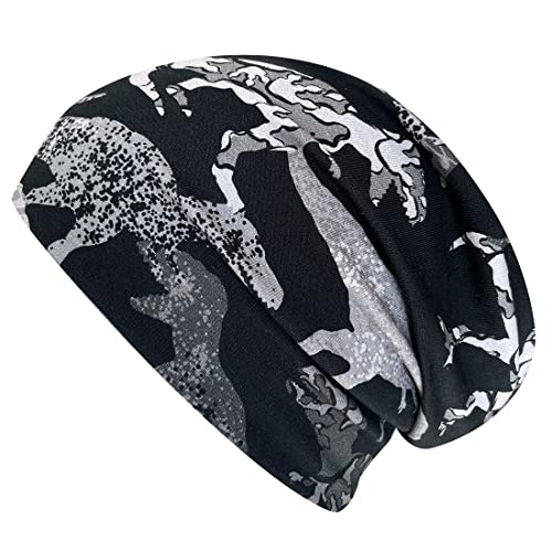 Wollhuhn ÖKO Ragazzo/Ragazza Comode e morbide mamme, cappelli a maglia/berretto per bambini leggero o foderato (tutto l'anno), in tessuto ecologico e biologico, Super DINO nero/grigio., X-Small